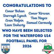 Congratulations to the following players who have been selected for the Waterford U14 Football...