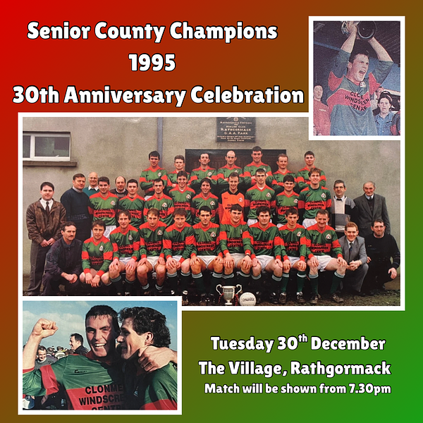 Join us to relive the glory days of our 1995 county final win on Tuesday 30th Decemberđ