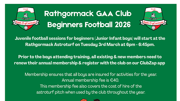 Rathgormack GAA Club welcomes all Junior Infant boys who want to learn new skills, make friends, and have fun!