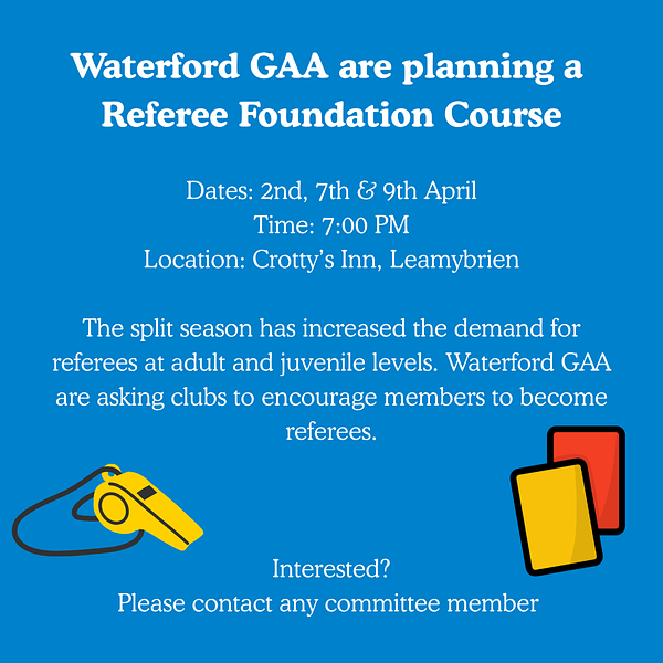 Waterford GAA are planning a Referee Foundation Course