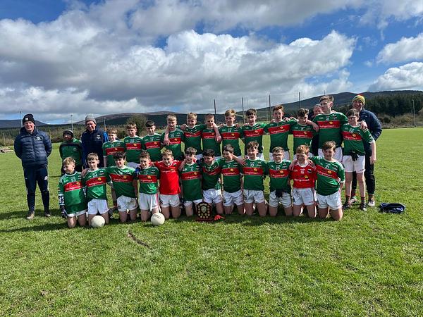 The boys played three rounds of matches yesterday, winning all of them to secure their place in this morning’s semi-final and final in Kilgobinet. They went on to win the final convincingly, defeating St Pat’s 1–5 to 0–2 in the sunshine in Kilgobinet.